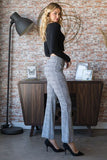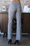 Plaid flare pants with a wide waistband are a fashionable and figure-flattering choice for a stylish outfit. The plaid pattern adds a classic and sophisticated touch to the pants, while the flare cut offers a chic and retro vibe. The wide waistband provides comfort and helps accentuate the waist for a flattering silhouette. Pair these pants with a fitted top or blouse to balance out the flared bottom and create a trendy look.