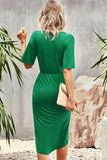 Surplice Neck Dropped Shoulder Ruched Dress • More Colors